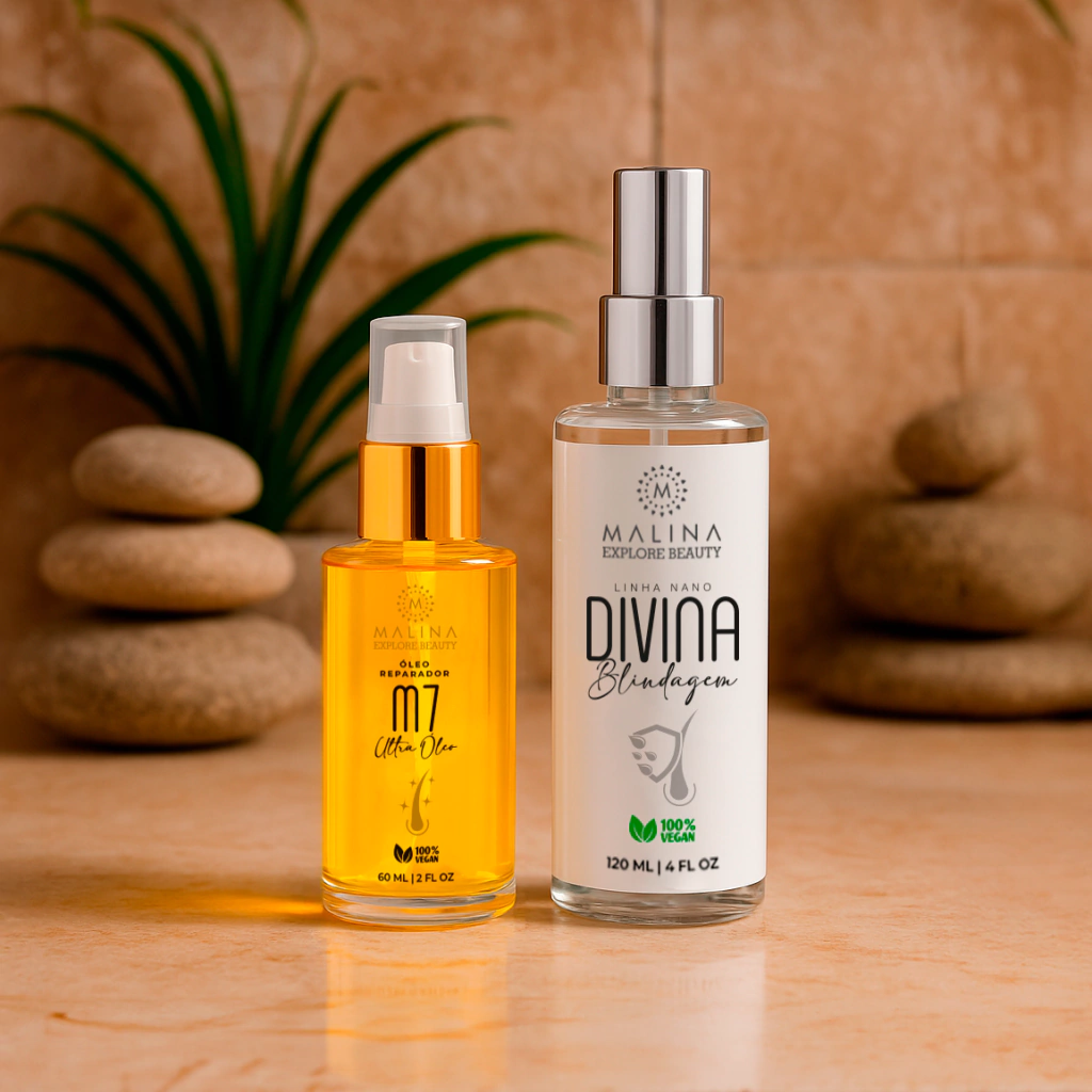 Transforme seus cabelos com o Kit M7 Ultra Óleo e Divina Blindagem da Malina Beauty. Especialmente formulado para cabelos cacheados, ondulados ou danificados, este kit proporciona hidratação profunda, definição de cachos, brilho radiante e uma proteção incomparável contra o frizz e a umidade. Experimente um cuidado capilar que une inovação e respeito ao meio ambiente.